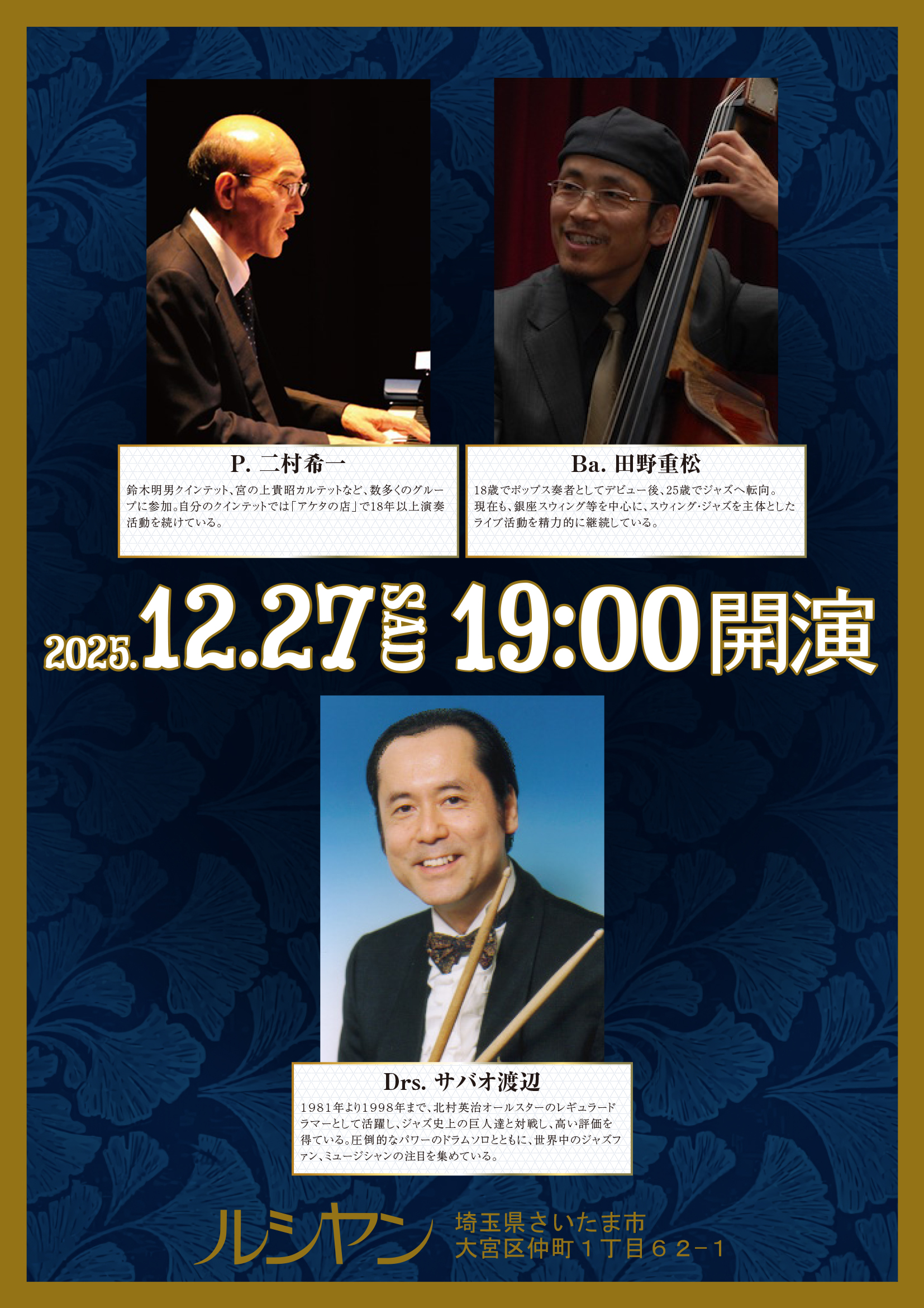 Pf. 二村希一 Ba. 田野重松 Dr. サバオ渡辺